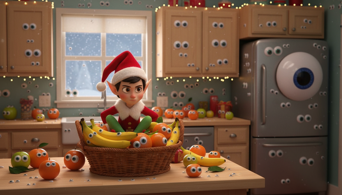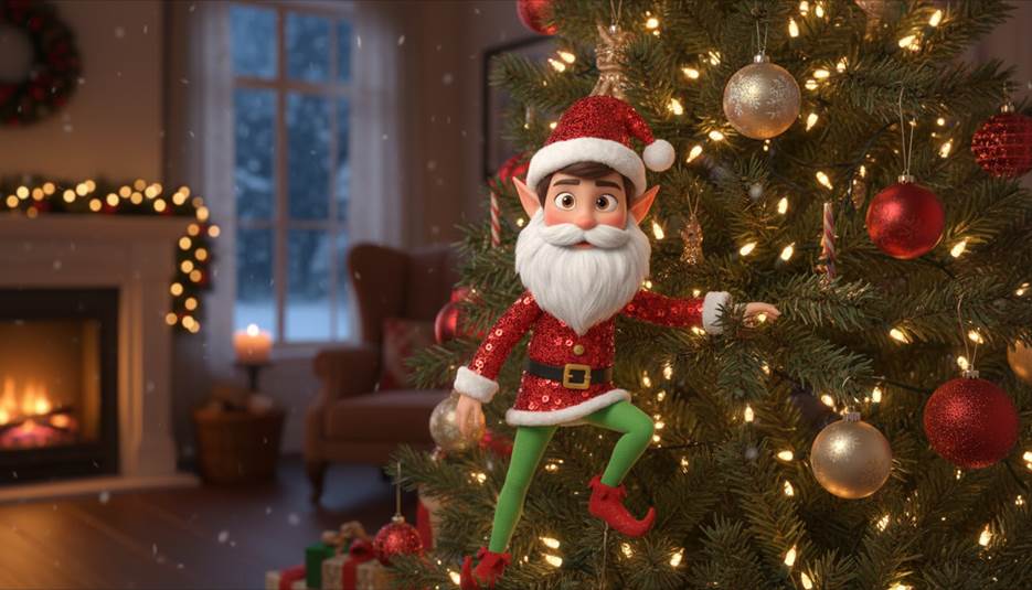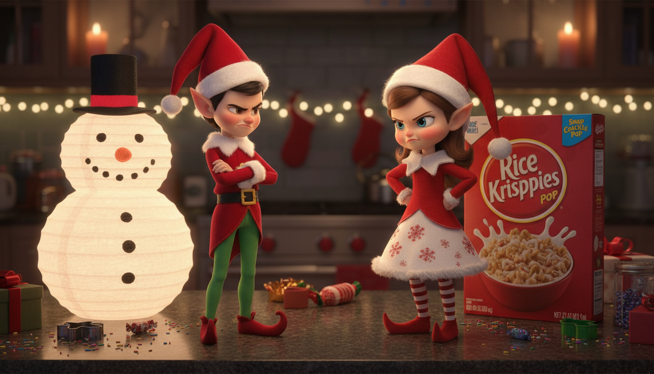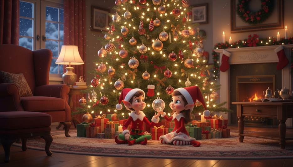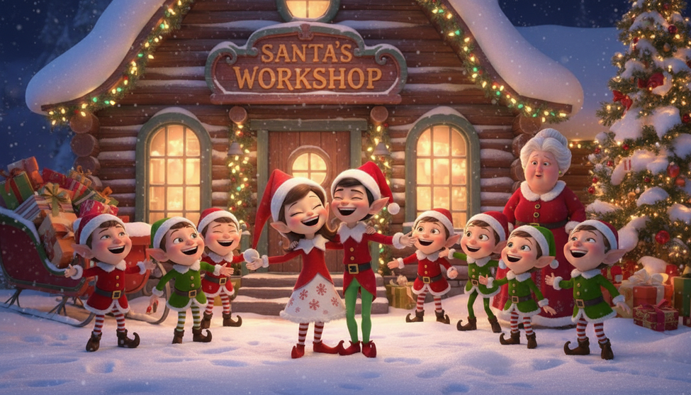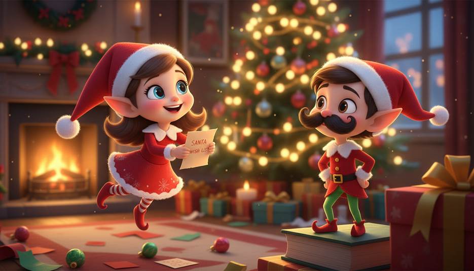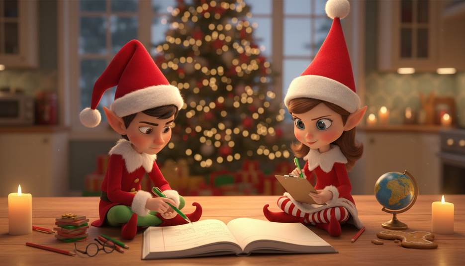 Nim and Lil were singing Christmas carols with the other scout elves as they waited for the night’s pep talk from the Big Guy.