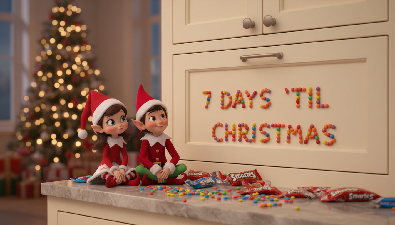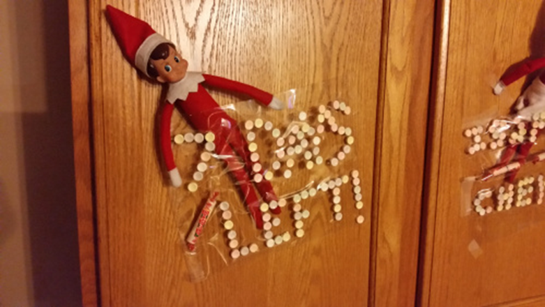 “A naughty elf switched his chocolate milk with chocolate eggnog,” she said, trying desperately not to laugh out loud. “He had three cups, and you all know that he only has eggnog after all the presents have been delivered. And even then, he only has one glass!”