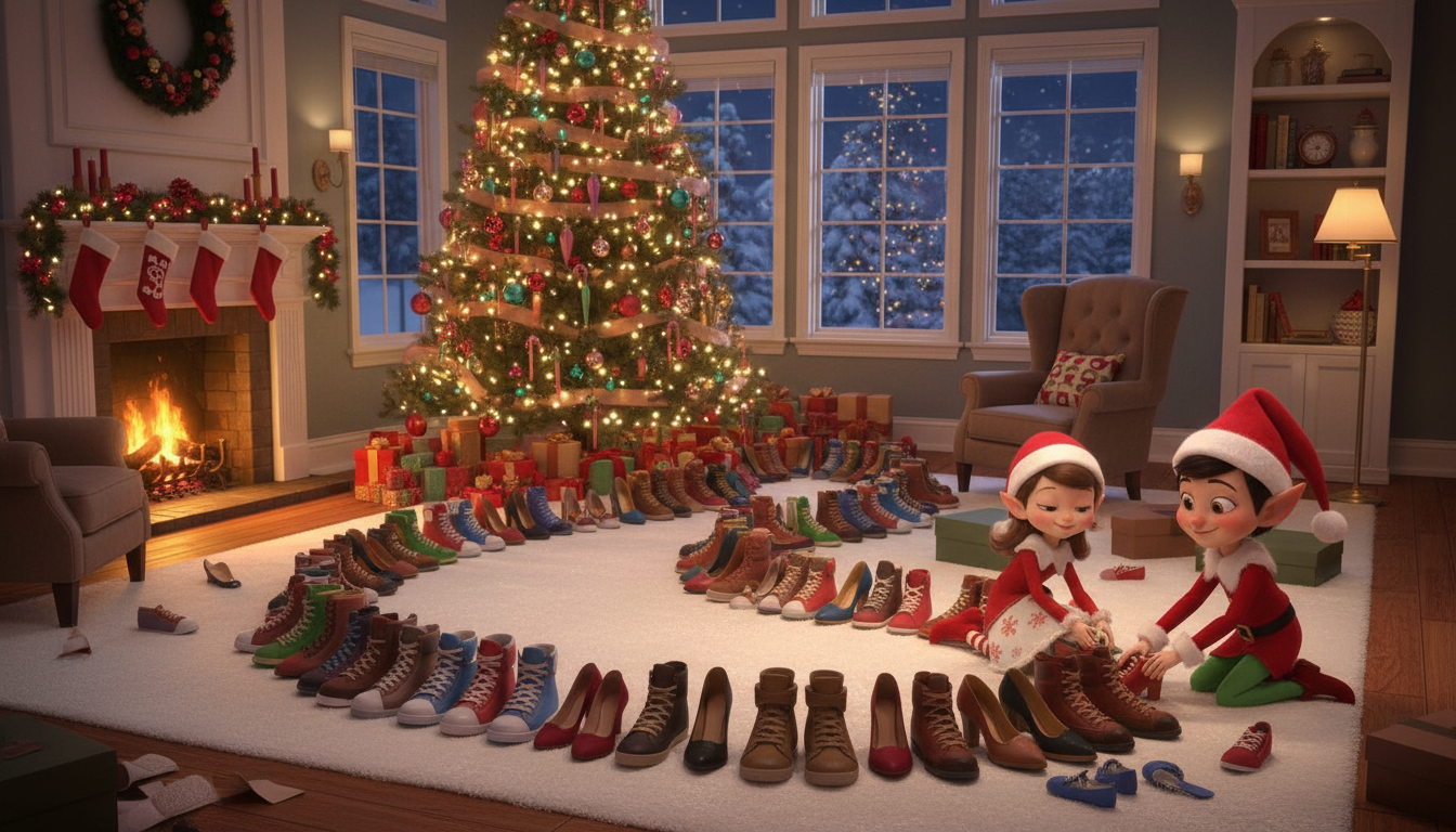 They spent a long time pairing up all the shoes and snaking them around the living room.