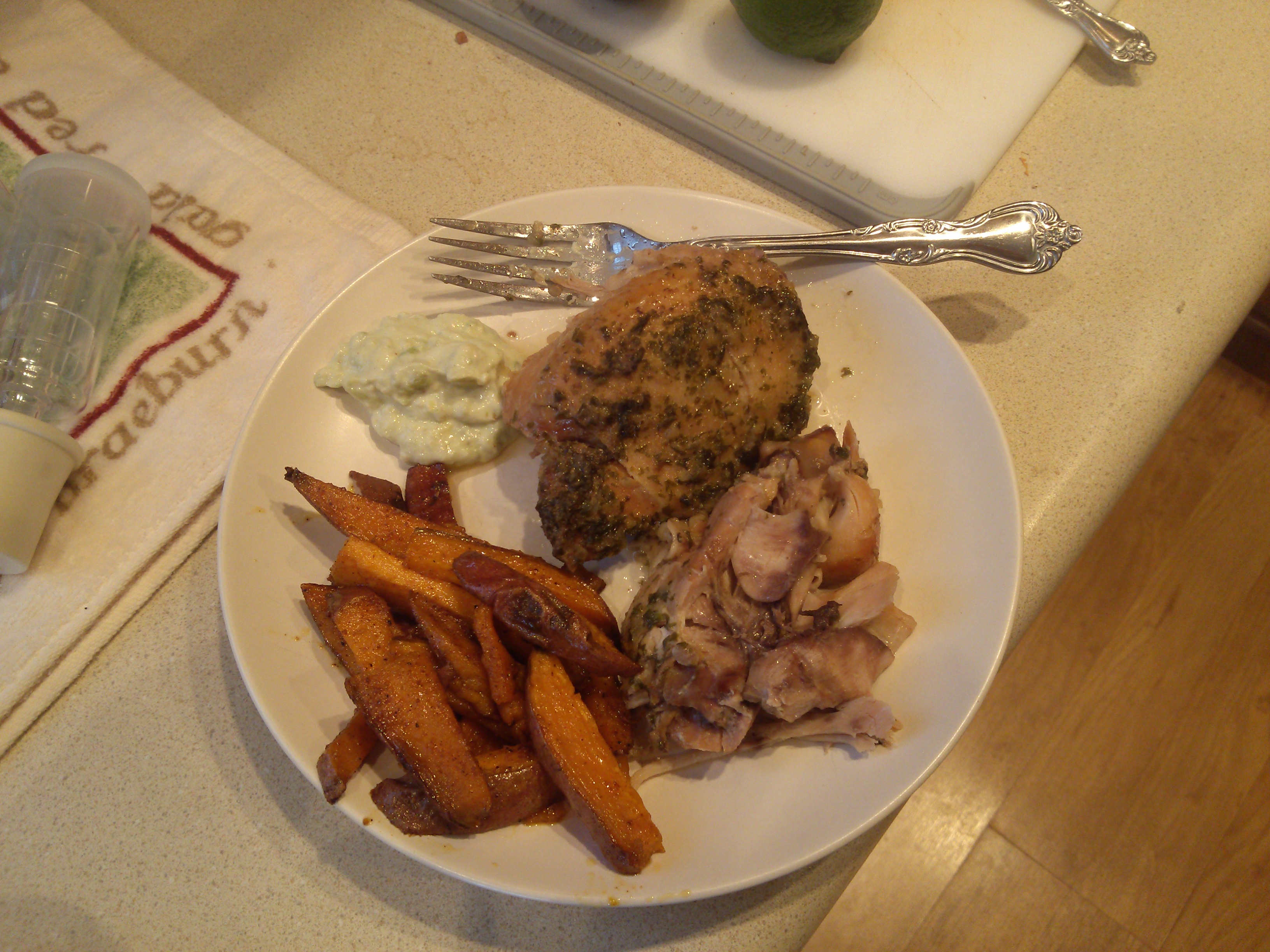 Last night I made what I deem a delicious dinner for my family. I’ve been trying to cook with whole foods and stick more to the Paleo way of eating this year which means lots of meat and veggies and steering clear of grains, legumes and any processed foods.