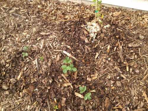 The rhizomes I planted are doing better than the strawberry starts. Very excited because these are a variety I haven’t heard of-alpine yellow.
