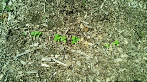 The roses and strawberries are still doing well. Ray and I tried the yellow strawberries today and can’t wait to get more of those pineapple flavored berries. YUM! I battled it out with the soaker hose on the ground and finally got it twined around most of the plants. I just need to cover over with mulch. I’m a little afraid that if I touch it again, it will coil back up and I will have to start all over.