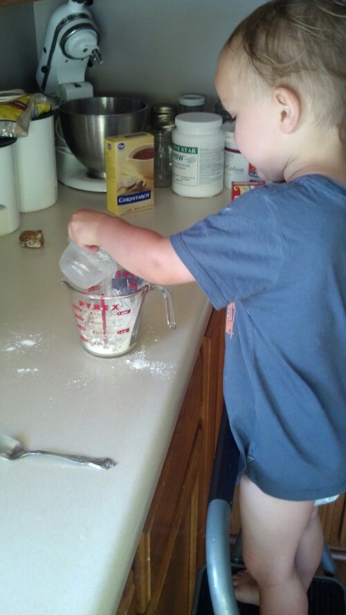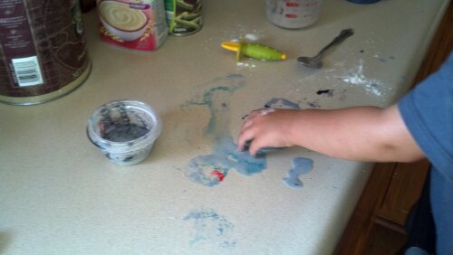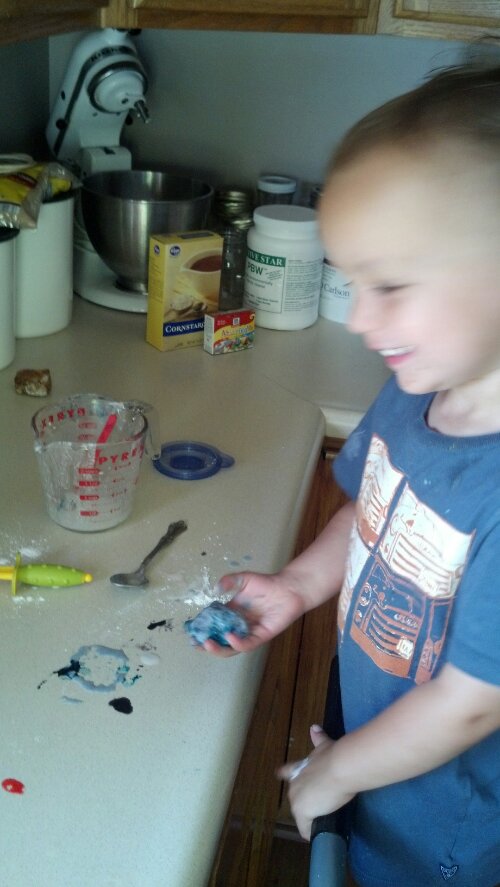 Joe always loves these experiments. He always makes a mess and has a blast. I like to do these because he learns how to mix and measure and help clean up. And…one day all of the science behind the fun will sink in.