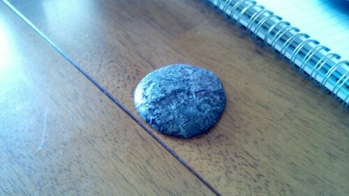 Now for the bounce test. Joe bounced it first and I thought maybe he didn’t throw it hard enough so I gave it a try. I got a very feeble bounce. Joe had fun with it for awhile. He laughed and ran all over saying “Bounce!” Then he set it down on the table and after a few minutes it turned into this: