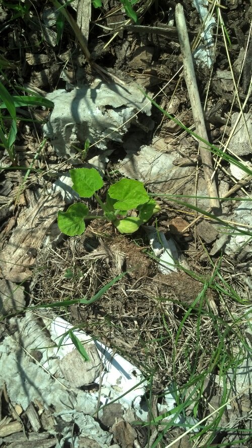 The watermelon seeds I planted weeks ago have struggled their way through and found the sun.