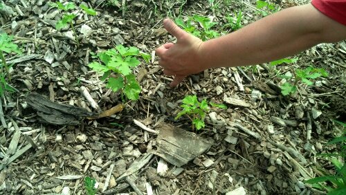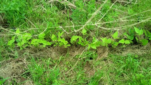 Blueberries and chokeberries the deer had eaten, growing back behind cages.