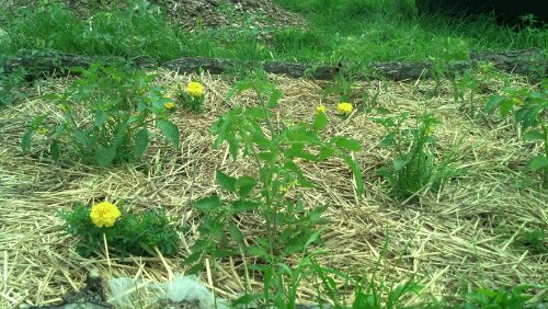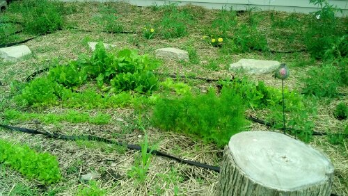Perhaps the most amazing growth is from our volunteer squash plant that is growing from our compost pile. It is either butternut or acorn.
