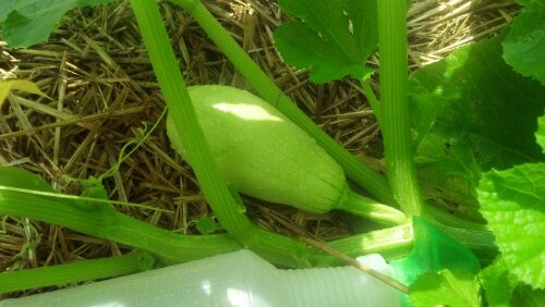 I did a google image search to try and determine what type of squash it is and I’m happy to report that the most likely culprit is…spaghetti squash!