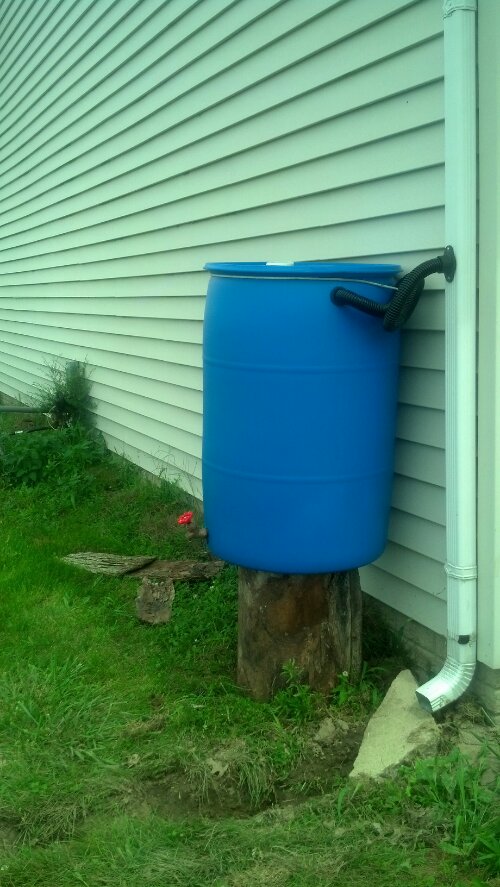 Why a rain barrel? With a rain barrel, we can harvest rainwater for our garden rather than pulling from the well. This way, we make good use of it before it reaches the aquifer that feeds our well. Rainwater is the best irrigation for gardens because it is free of added chemicals such as chlorine and fluoride and there are no dissolved salts and minerals from the soil in it yet.