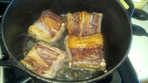 Heat about 1-2 TB of coconut oil in a dutch oven. Brown the short ribs in batches, making sure not to crowd the pan. Set meat aside.