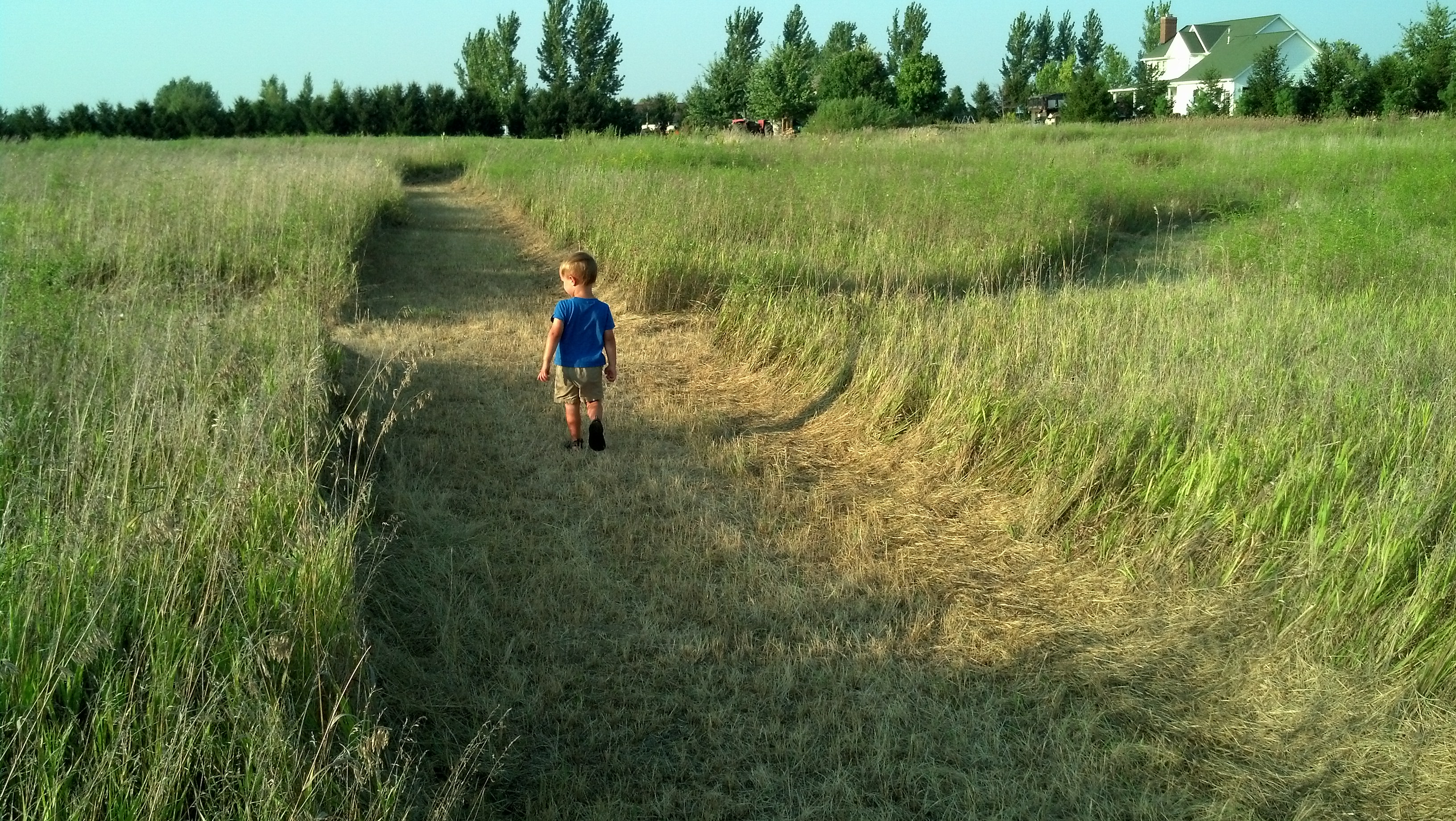 This ritual has become even more fun now that Ray cut a maze in the back pasture. A real maze with dead ends, twists and turns. Joe loves going through it. I follow him as he decides which way we are going to go, shouting out an “Oh no!” when we hit a dead end.