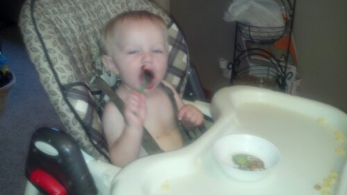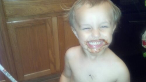 And here’s my beautiful mess of a kitchen and one messy boy, grinning ear to ear.