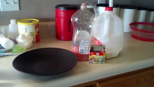 It’s so easy. All you need is milk (I read that anything 2% or higher is best), dish soap, a plate and food coloring.