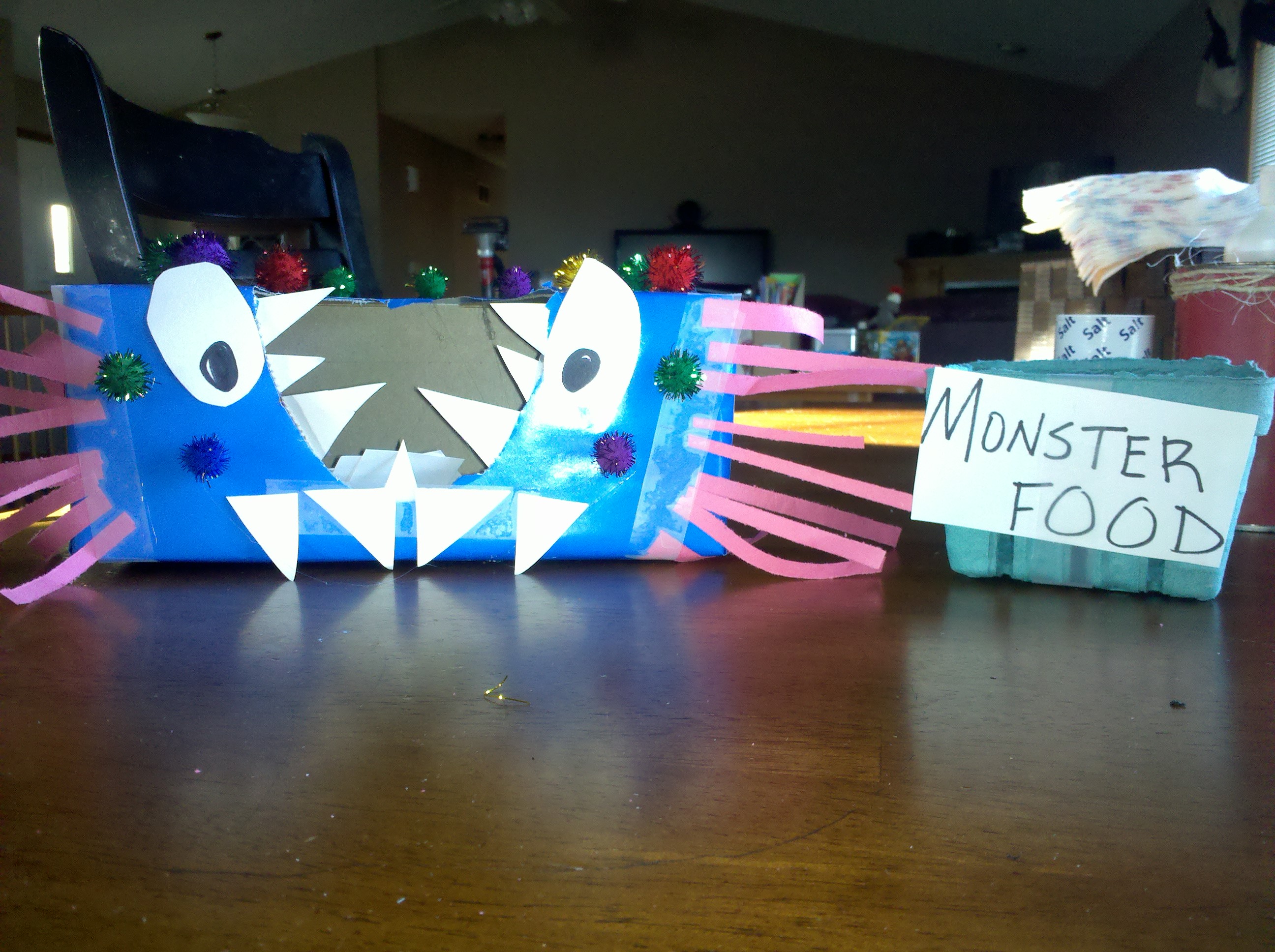 When the boys get bored with this monster, we are going to make little bugs out of construction paper and pipe cleaners and see how many we can fit in Joe’s bug house.
