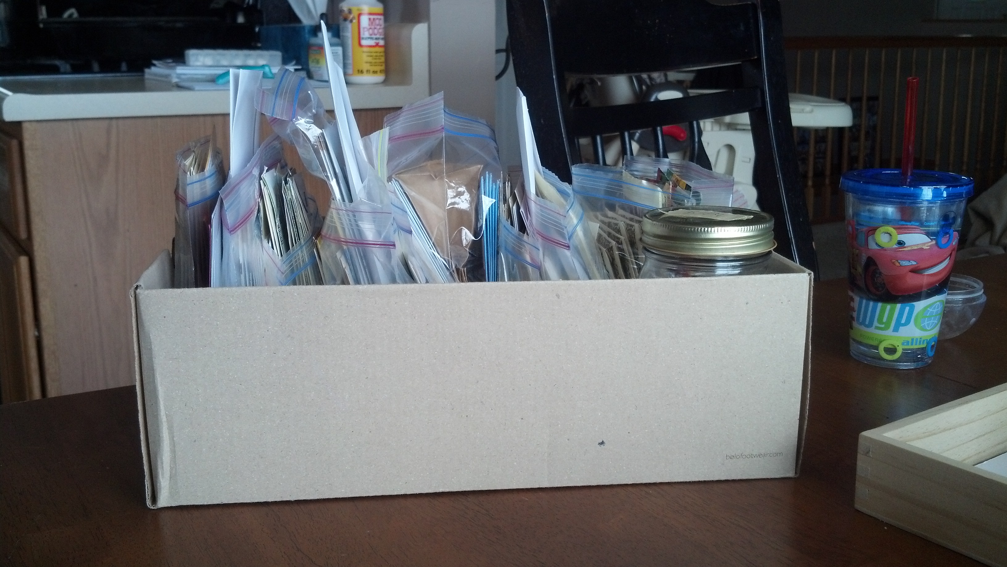 Before I actually start the seeds, I like to organize my packs by date. I group them and put them in ziplocs so I can simply grab the baggie and get going. As you can see…I really went overboard this year.
