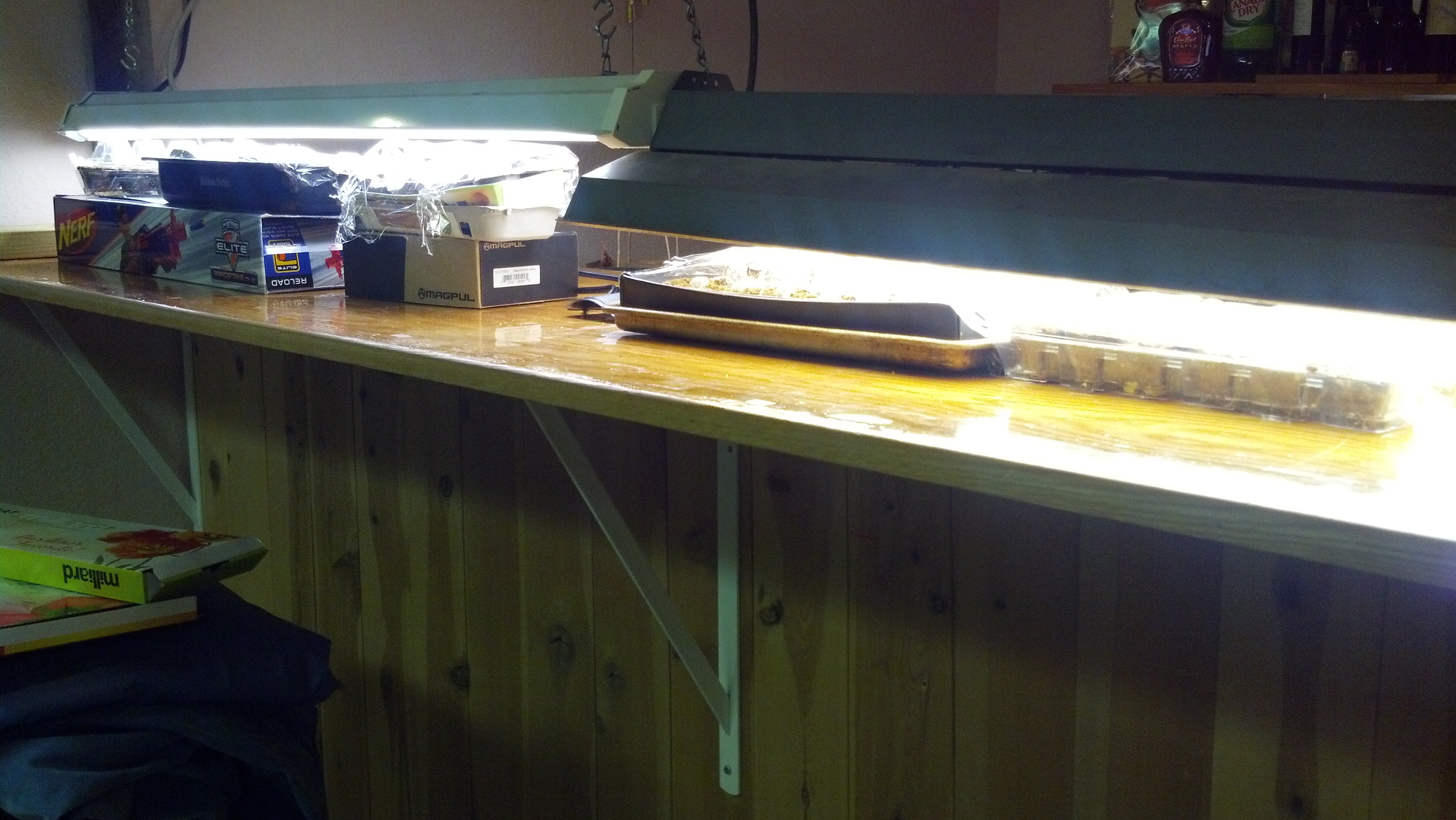 Ray and his dad built and installed a seed-starting station with hanging grow lights (pictured below), and I have created a rolling schedule (a portion pictured below) of what seeds to start and when to start them.