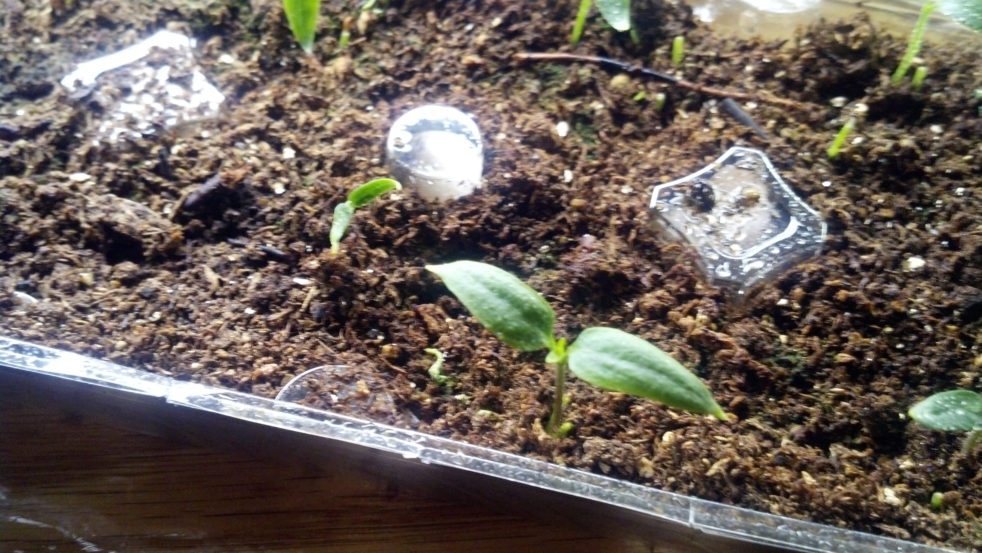 Once our second set comes in, it will still most likely still be a bit too cold to put them in the ground, so I’ll transplant them into clear plastic cups with holes drilled in for drainage until the end of April.