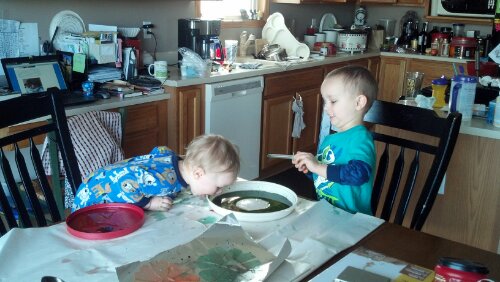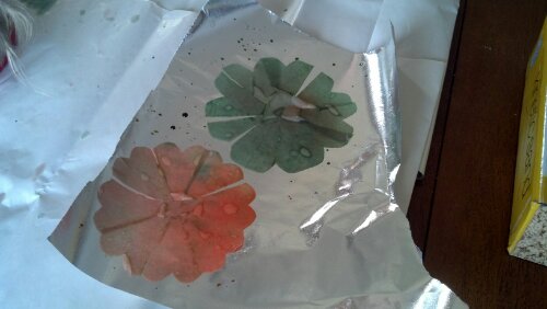 The coffee filter flowers were a big hit with both boys. They did not turn out as colorful as the examples on the website, but the boys were busy playing with the food coloring for a good 30 minutes.