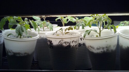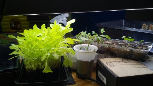 What you see here are my black sea man tomatoes and a couple broccoli plants reaching up toward the UV bulbs.