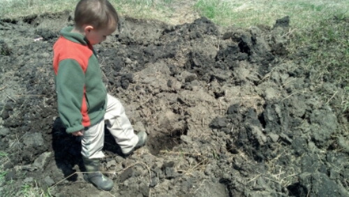 He was hard at work digging holes for all the trees we need to plant. We have 30 oak, 4 nanking cherry, 4 chestnut, 2 almond, 2 walnut, 4 dwarf cherry, 1 dwarf pear, 3 cherry root, 3 apple root, some willow and dogwood we got from Ray’s grandparents and 3 sugar sweet cherry that we need to plant. That’s right…56+ trees and we still need more.