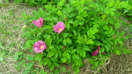 The boys and I were out watering today and found that more rosebuds had bloomed and more strawberries had ripened to a bright red.