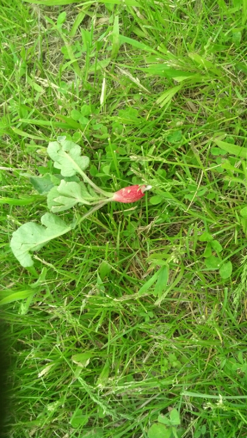 I decided to plant some vine peach in the mound with the rhubarb, artichoke and potatoes and while digging I found what looked like radishes…everywhere.