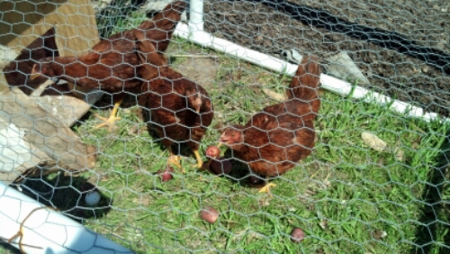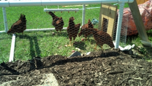 Then we visited the chickens and threw down some potatoes that were starting to turn. They came out and clucked and pecked at the potatoes, but ran back in when Joe started laughing at them. I guess they were embarrassed.