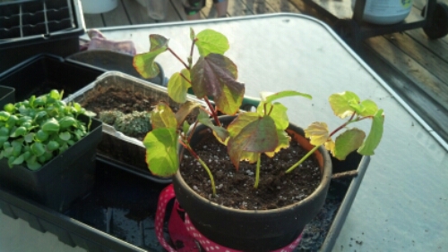 Finally, the other grape plants have started to green up! I was worried that only one had survived the winter, but the others are starting to fill out with those lovely dusty green leaves.