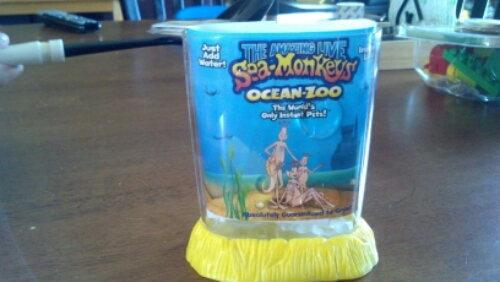 A fun, easy and inexpensive activity: sea monkeys. Joe has been checking them daily. We can’t see anything right now, but in the next few days we should be able to see something.