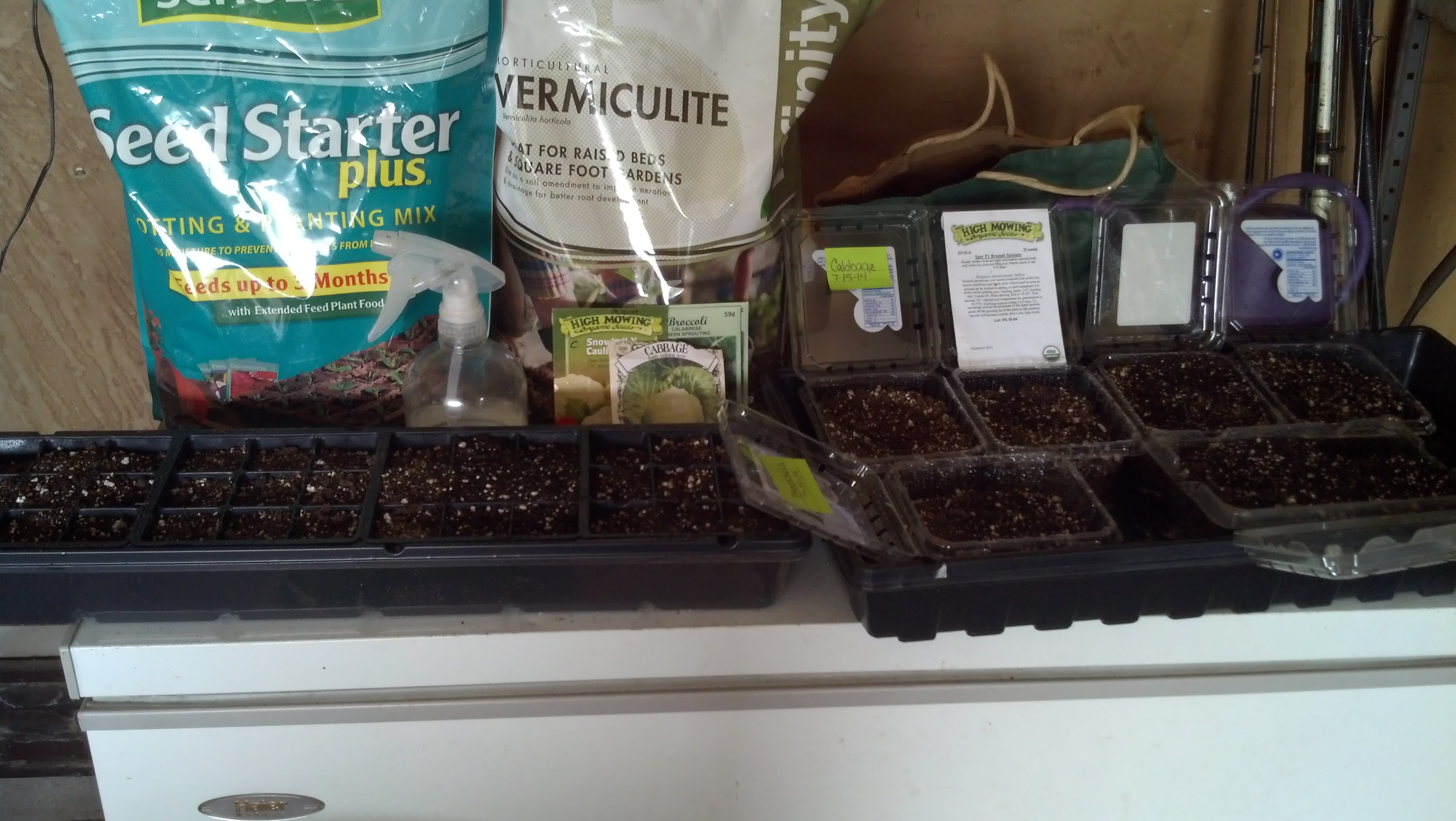 Broccoli and cauliflower in the seed starting pods and cabbage and brussel sprouts in the berry containers. Excellent for drainage.