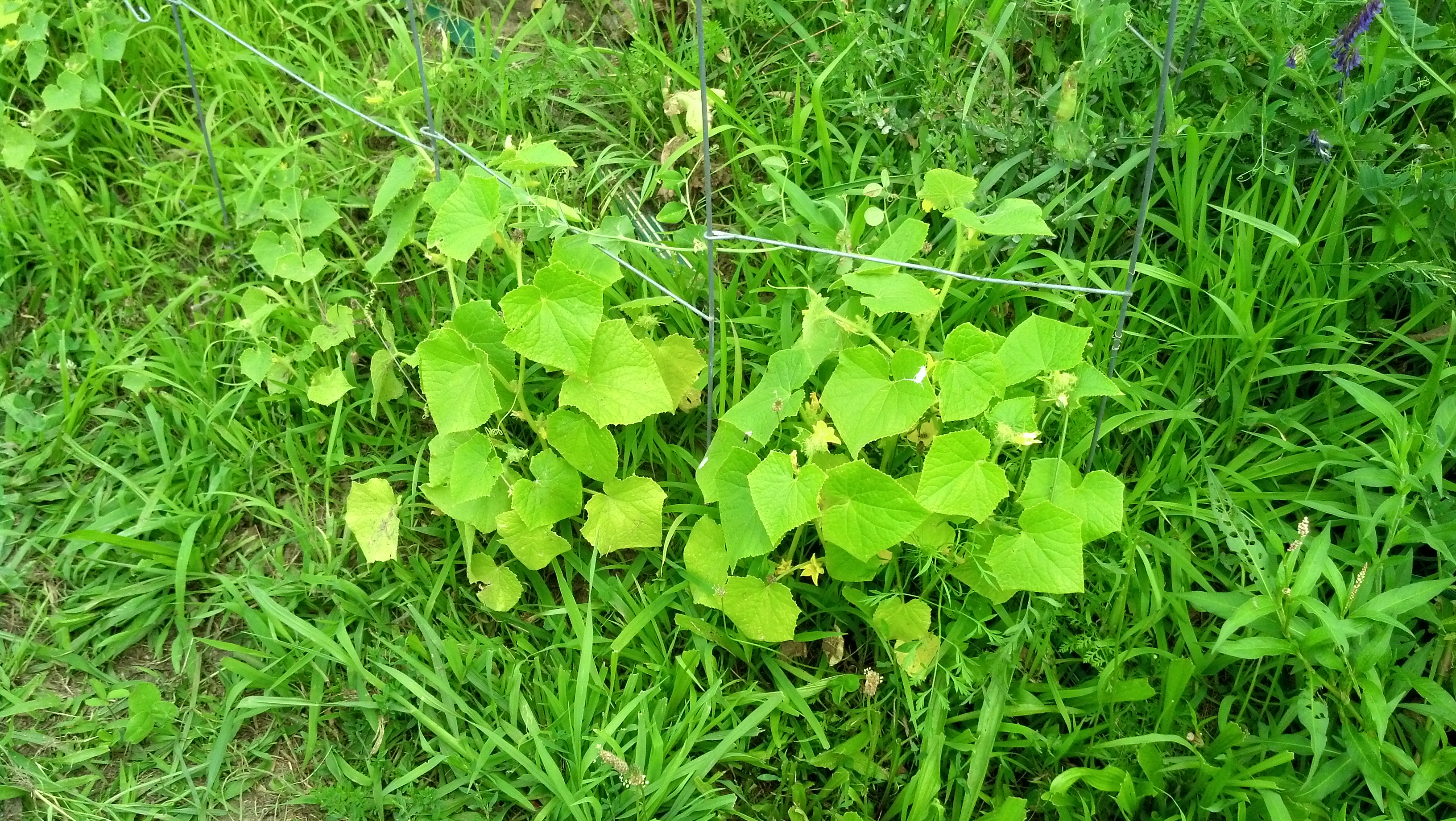 On a final note, the cucumber is looking rather sad. I expected to have some coming in by now, but it’s yellowing and the flowers look pitiful. There still may be hope, but I’m starting to think that homemade pickles just aren’t going to happen again this year.