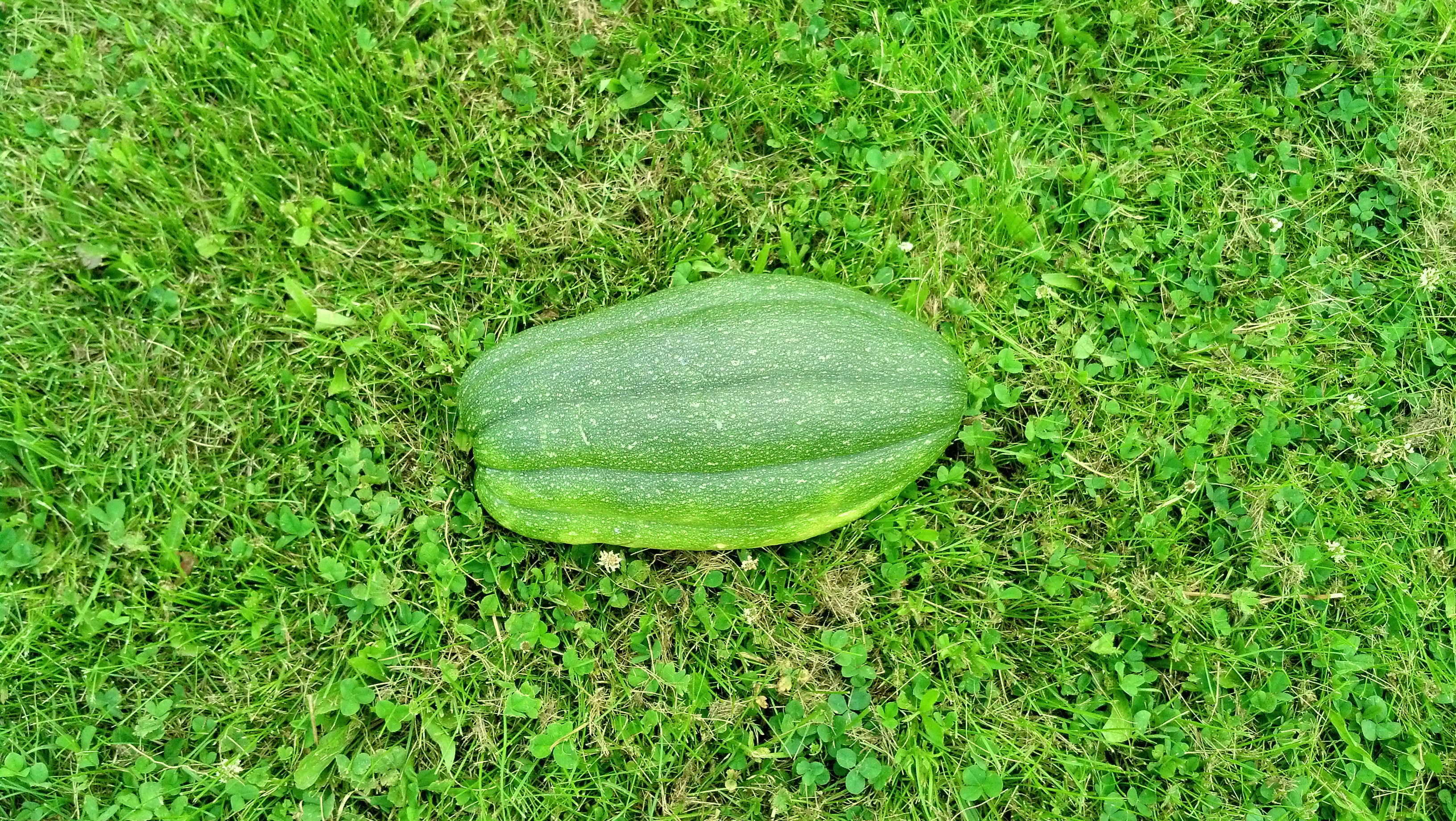 In other gardening news, I pulled this monster squash from the bed of volunteers. I believe it is a zucchini variety, but I’m not completely sure. Pictures I’ve found that look similar call it “green summer squash”. It’s a little bit bigger than a football. Any guesses?