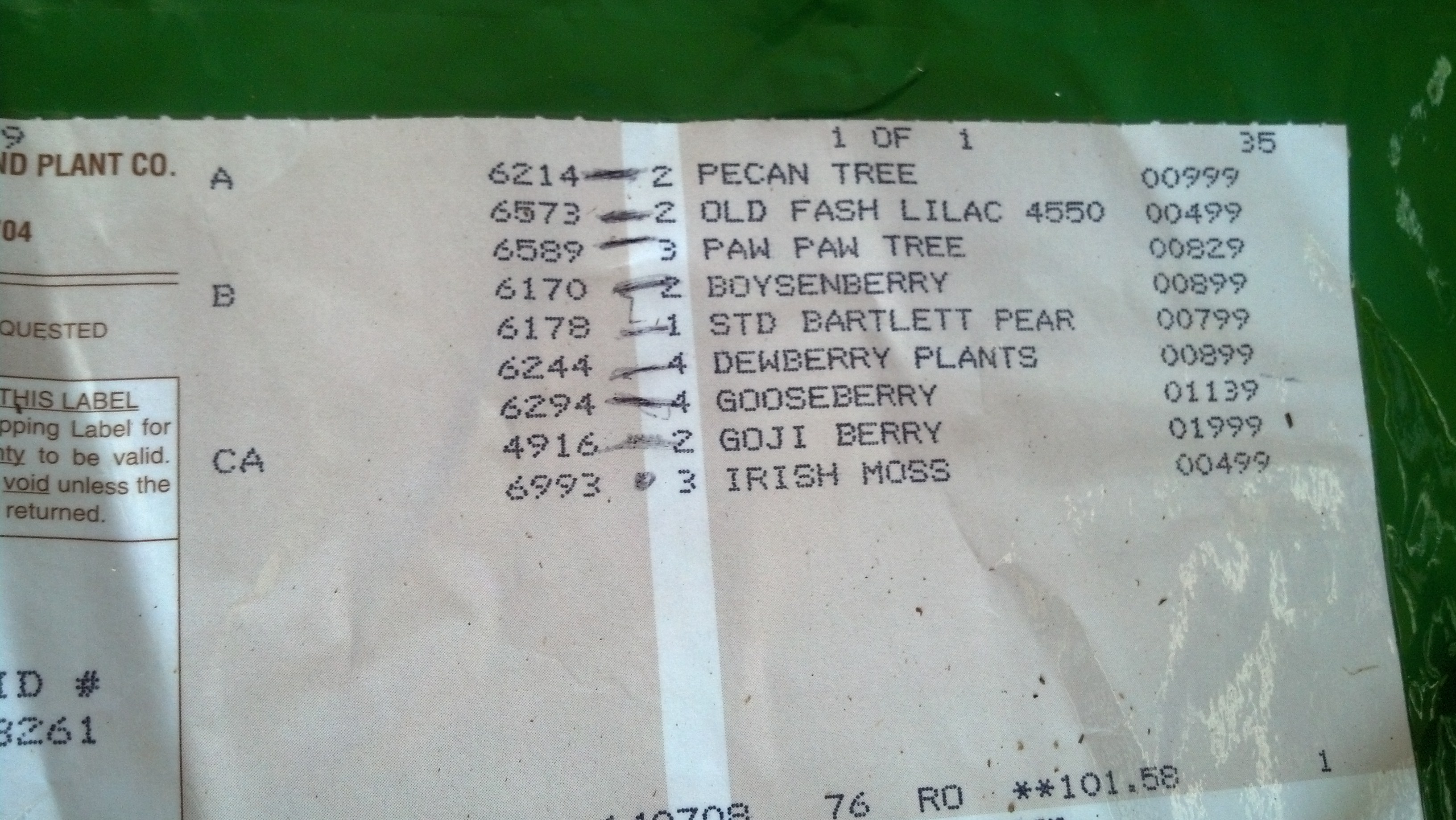 I’ll be planting the lilac, goji berry and irish moss right away. The rest will be planted in September.