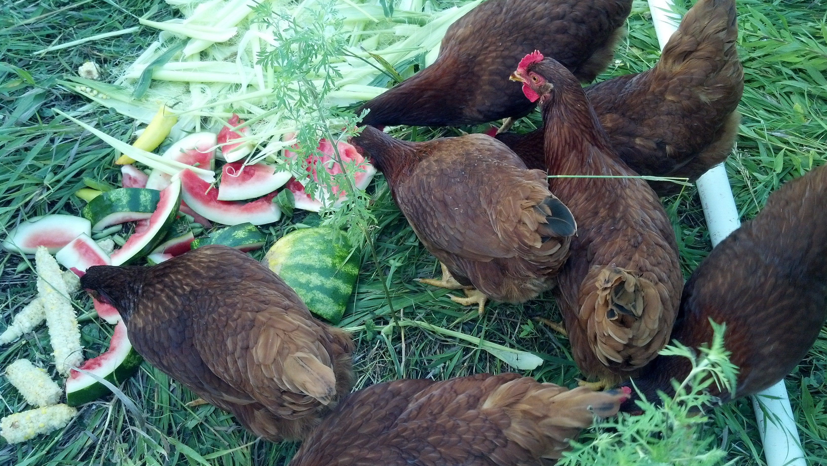 They were rewarded with a feast of watermelon rind, corn cobs and tomatoes. It took about ten minutes to completely decimate the rinds.