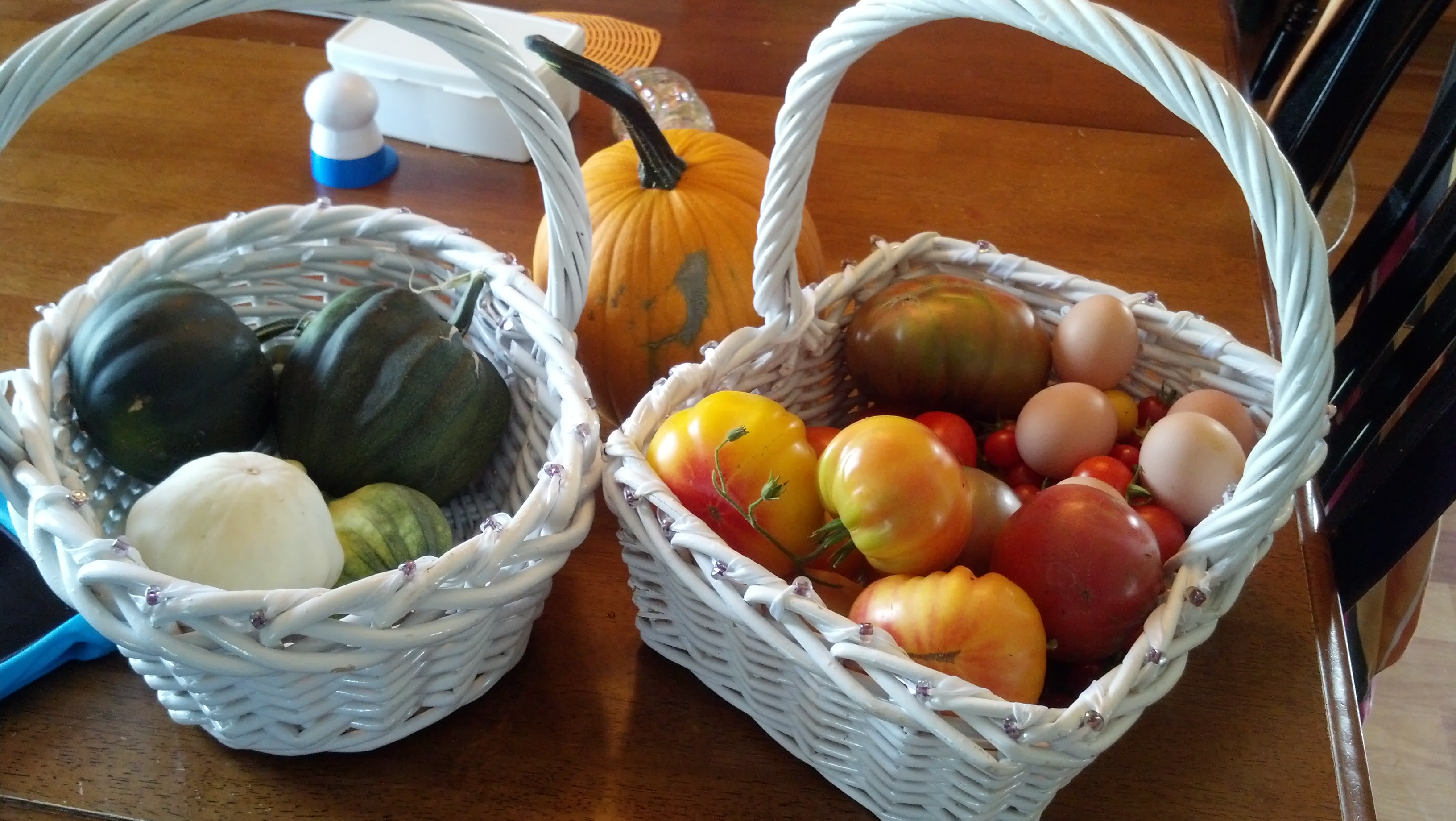 In addition, we harvested cherry tomatoes, black prince tomatoes and Mr. Stripey tomatoes. We pulled out 2.5 acorn squash and one patty pan.