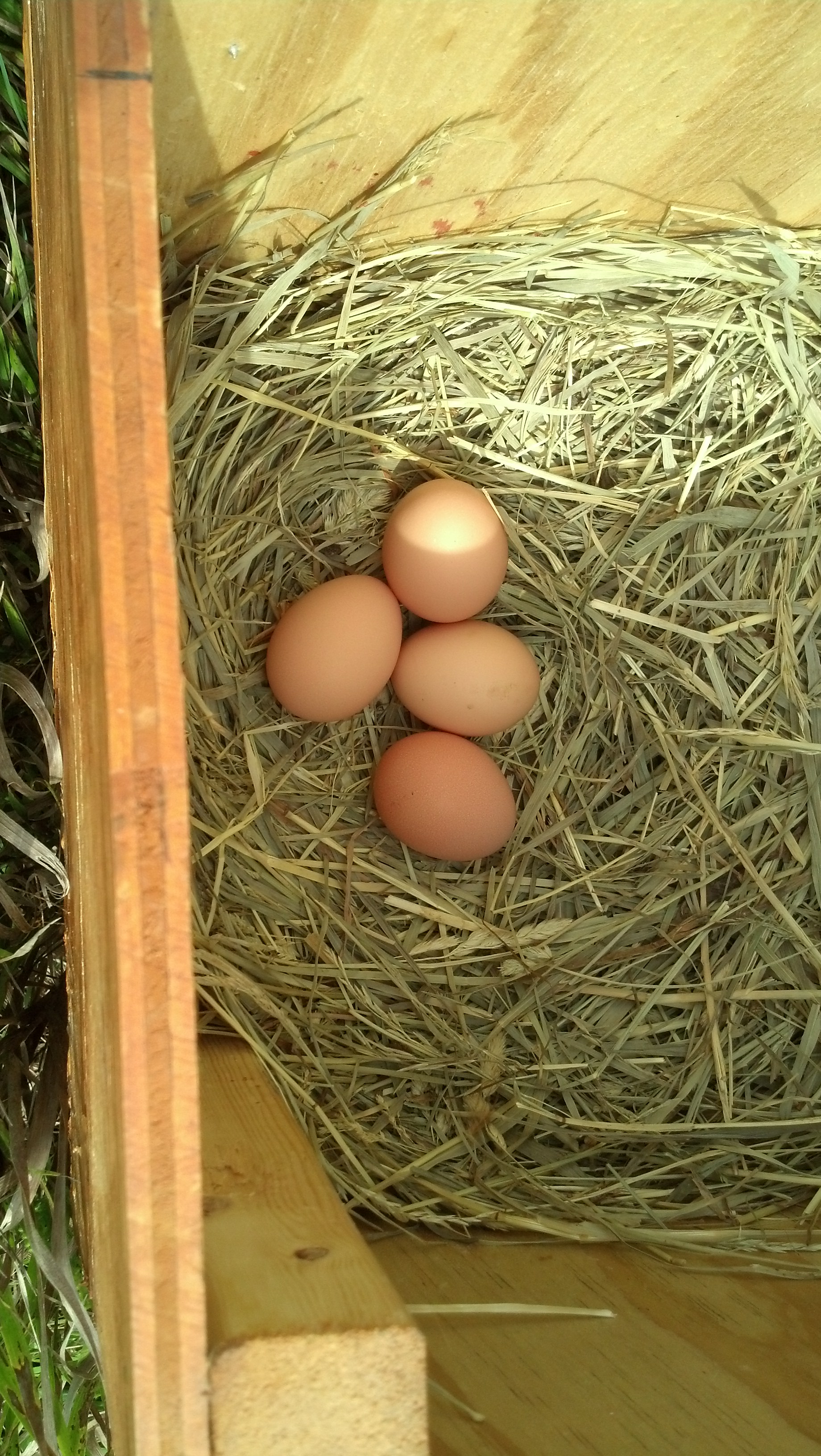 Finally, all eight of our girls are laying! I gathered 4 eggs in the morning, another three at lunch and a final egg in the late afternoon.