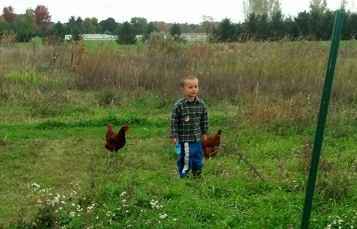 He finally asked for the “chicken catcher” AKA the fish net we’ve been using to round ’em up. Then there was a lot chasing and laughing and, luckily, the chickens were rounded up unscathed.