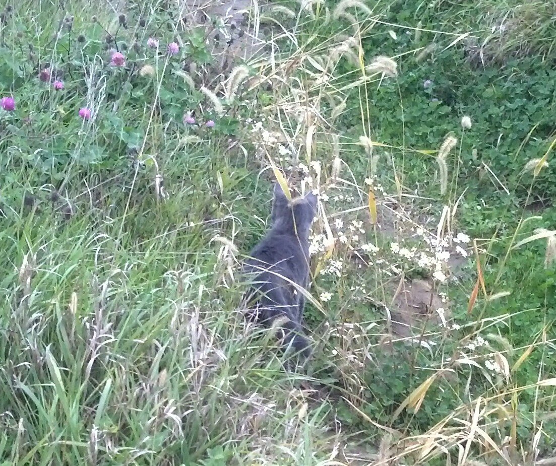 The cats, now almost full grown, were stalking them…more out of curiousity, I think than intent on a meal. They would get close, the chickens would squawk, and the cats would high-tail it back to the house.