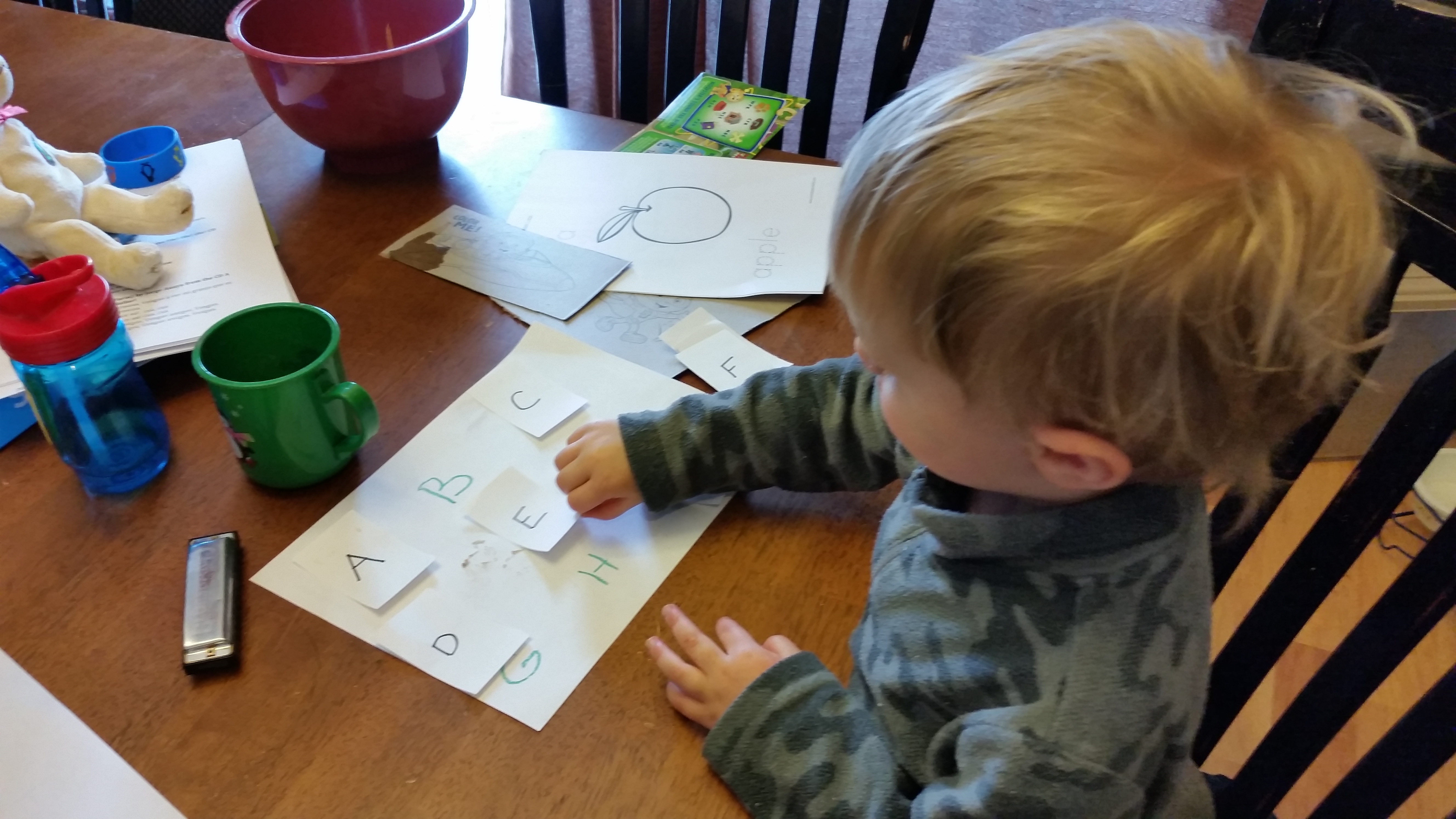 When Joe got bored with the letter tracing, he flipped the paper over and started writing letters in alphabetical in order. I’d never seen him do that free-form before.