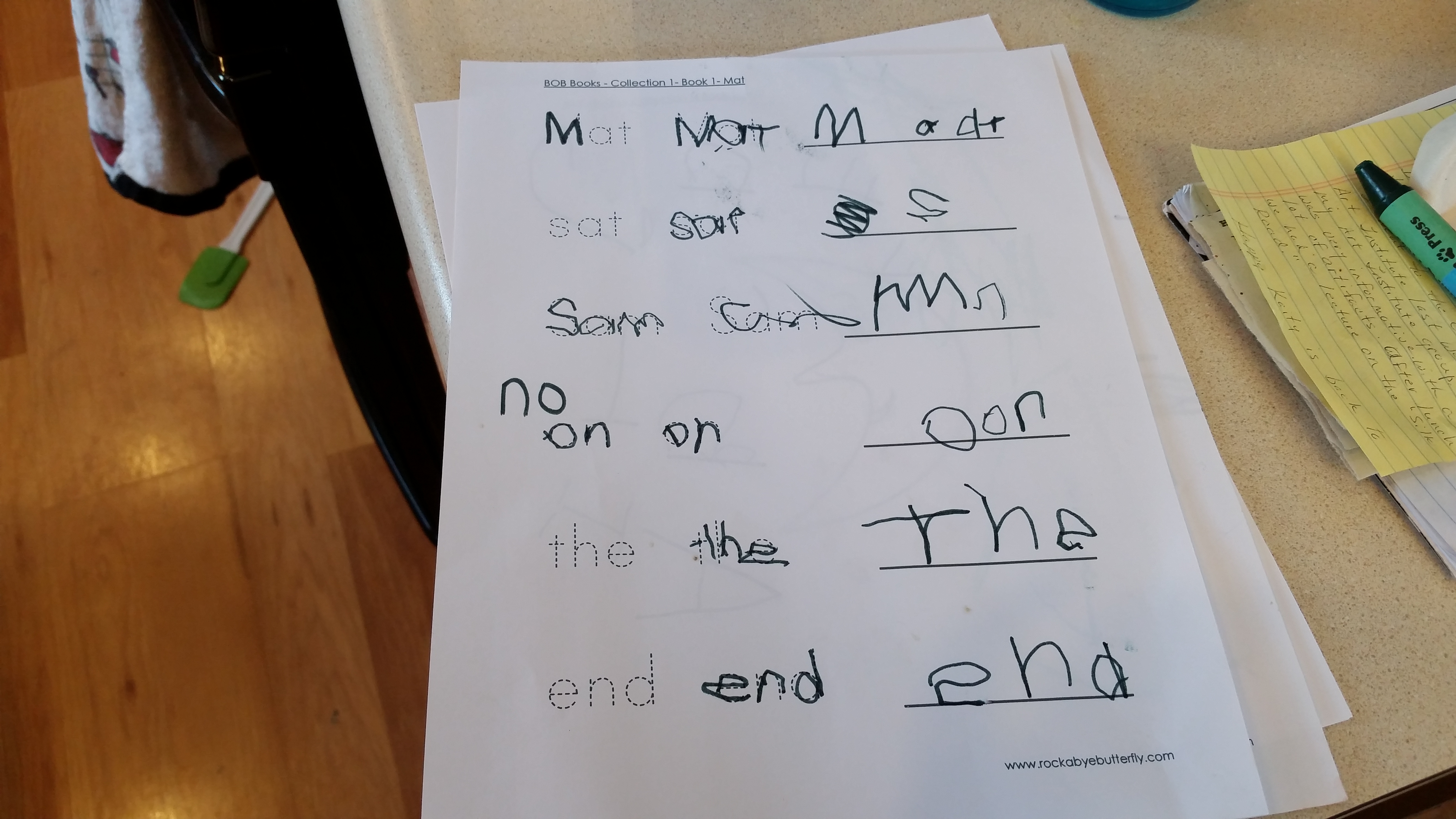 Joe wanted to trace letters. So…I printed out a few templates with the words from Books 1 and 2 of the Bob Books Beginner Set.