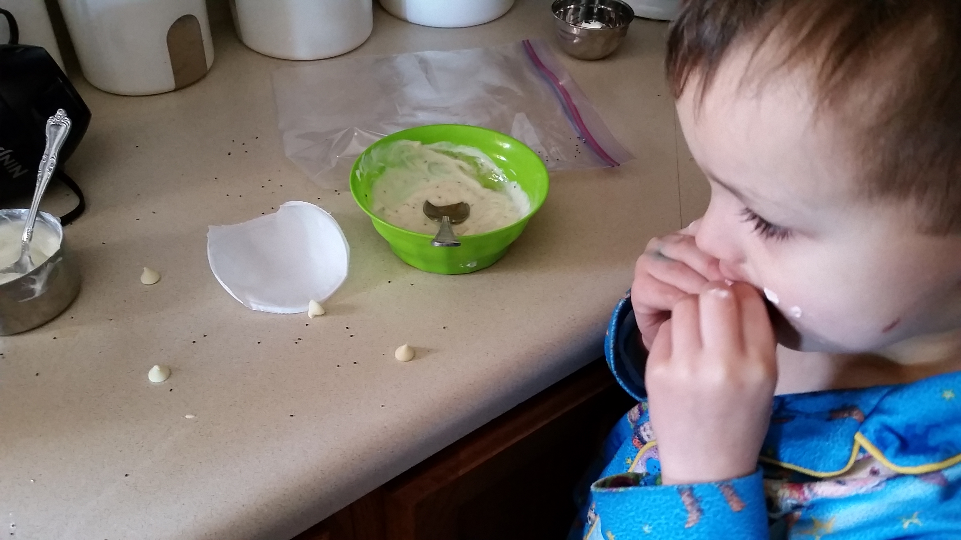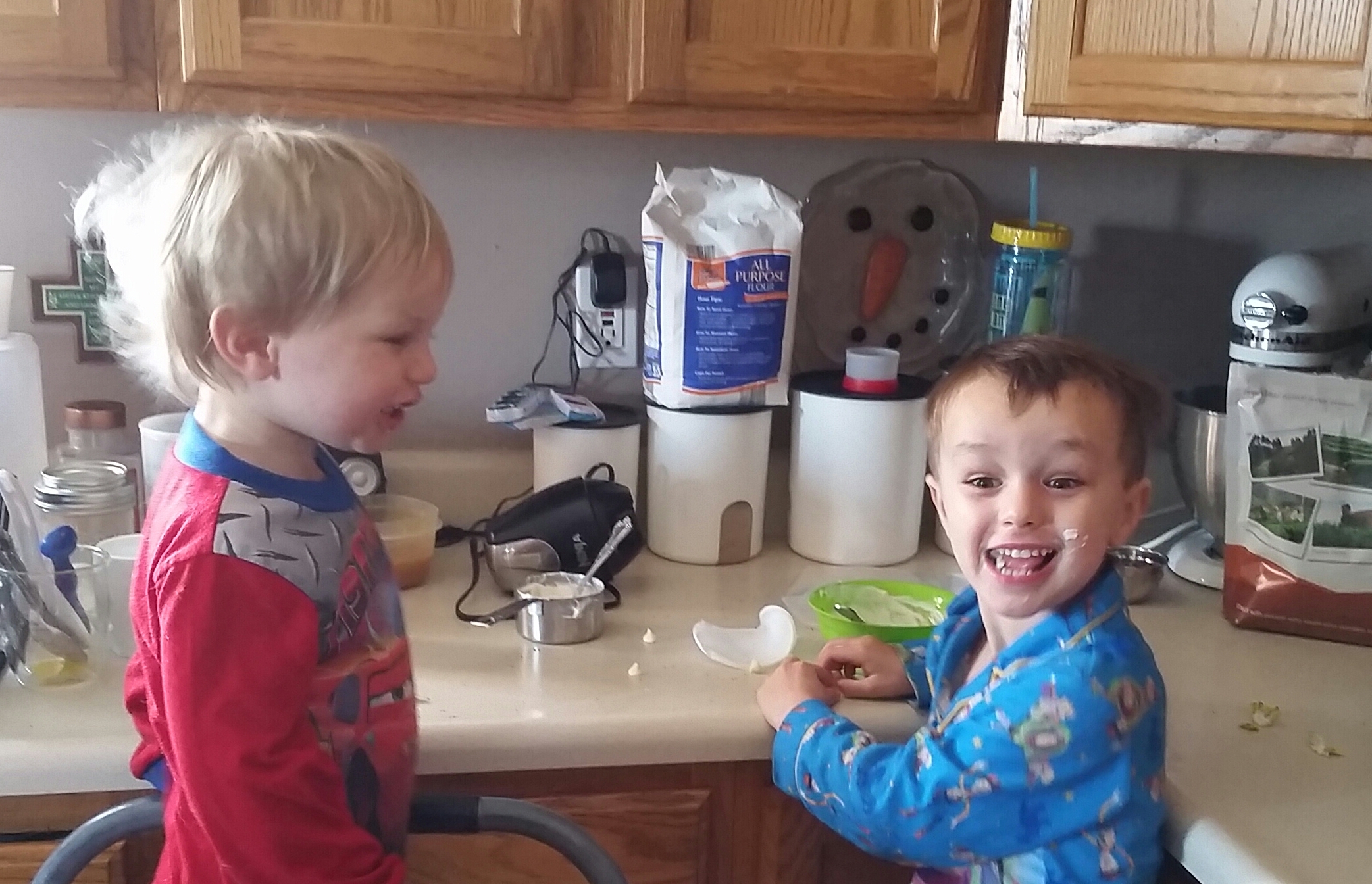 The boys love to help in the kitchen, so I got out the step stools and we spent 30 minutes mixing the batter.