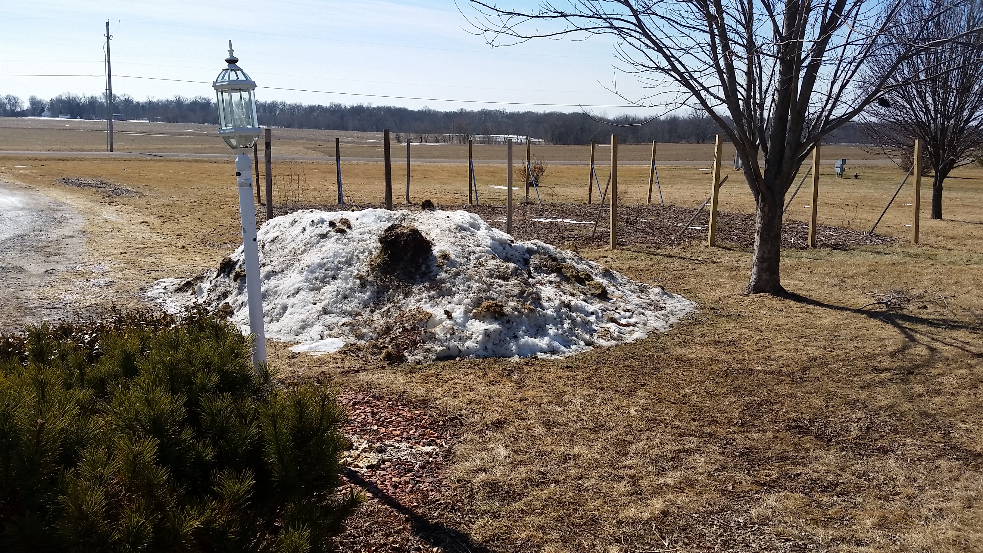 What a difference a week makes! Except for the “giant” sledding hill in the front yard, most of the snow has melted, filling our swales and leaving a few puddles in the yard.