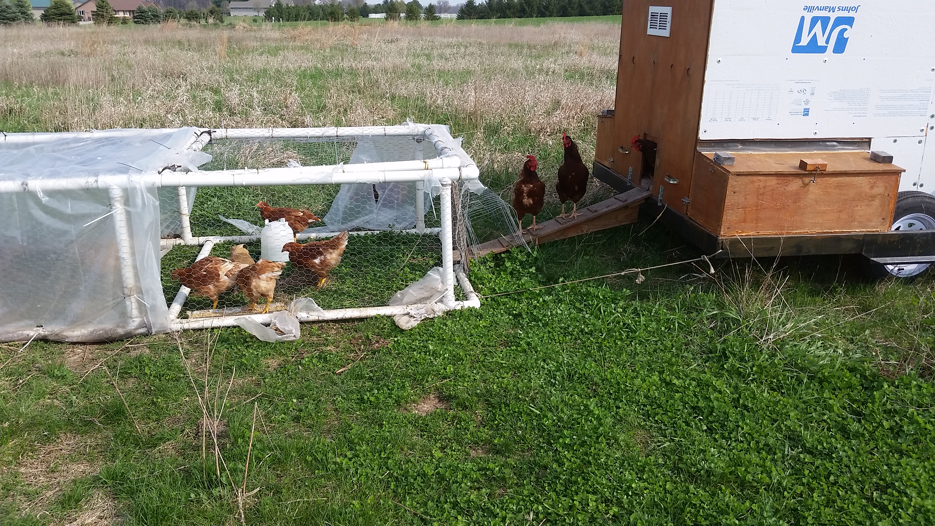 The pullets huddled together on the ramp, wondering if they dared go inside. Ray gave them a little encouragement and soon they were all inside the coop.