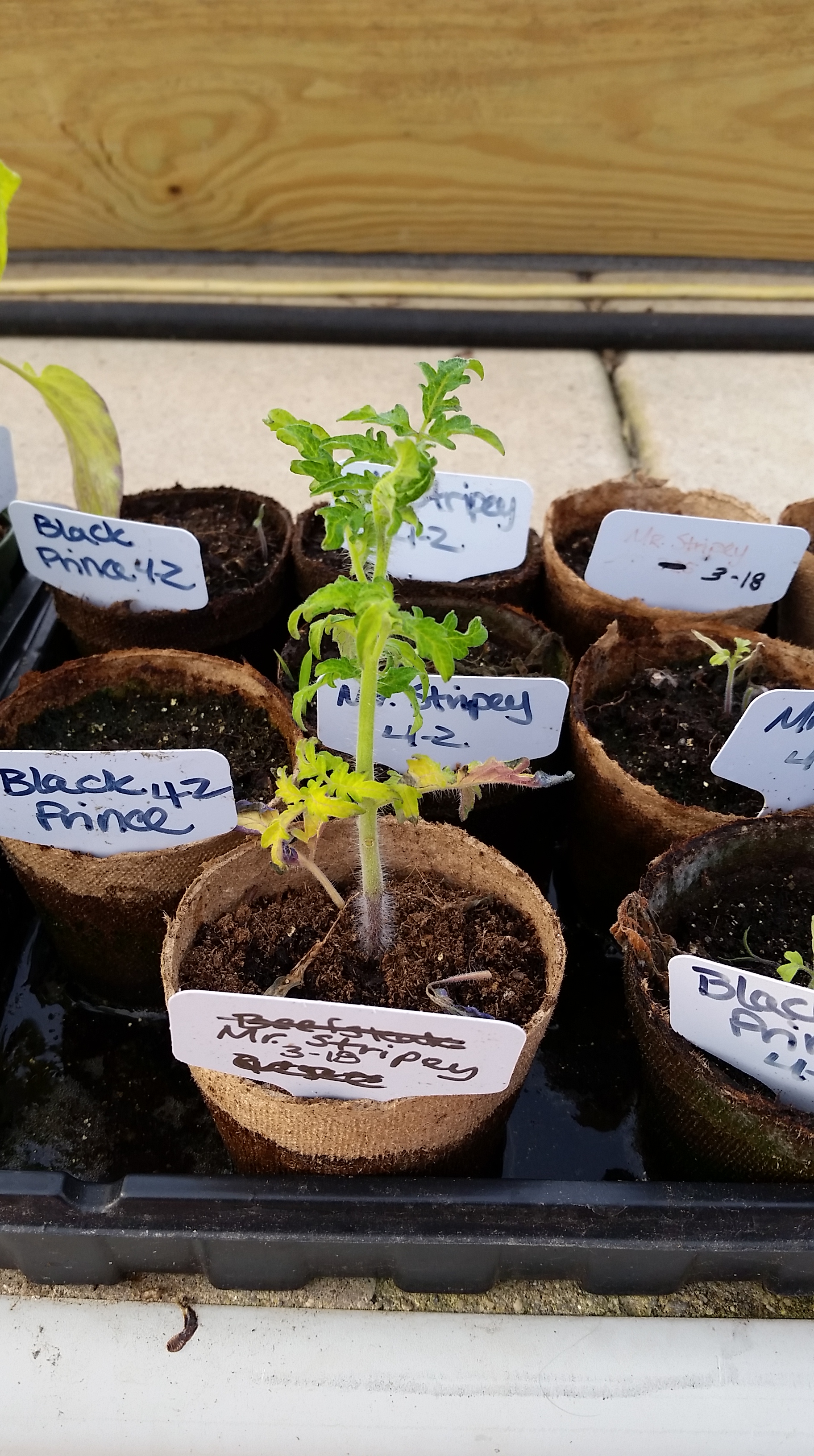 After scattering the seeds, I stopped by to water the other plants. The Replacements are growing quickly. One Mr. Stripey that was all but dead has made a miraculous recovery and already has a strong and stout stem.