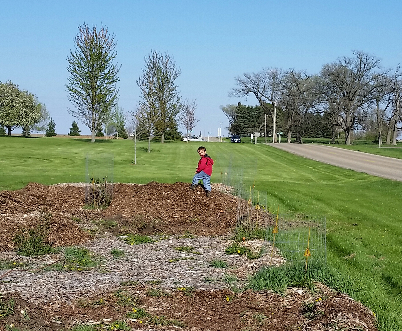 We’ve had a giant pile of wood mulch hanging out in the fedge for well over a week now. The weather or time has been keeping us from spreading it.