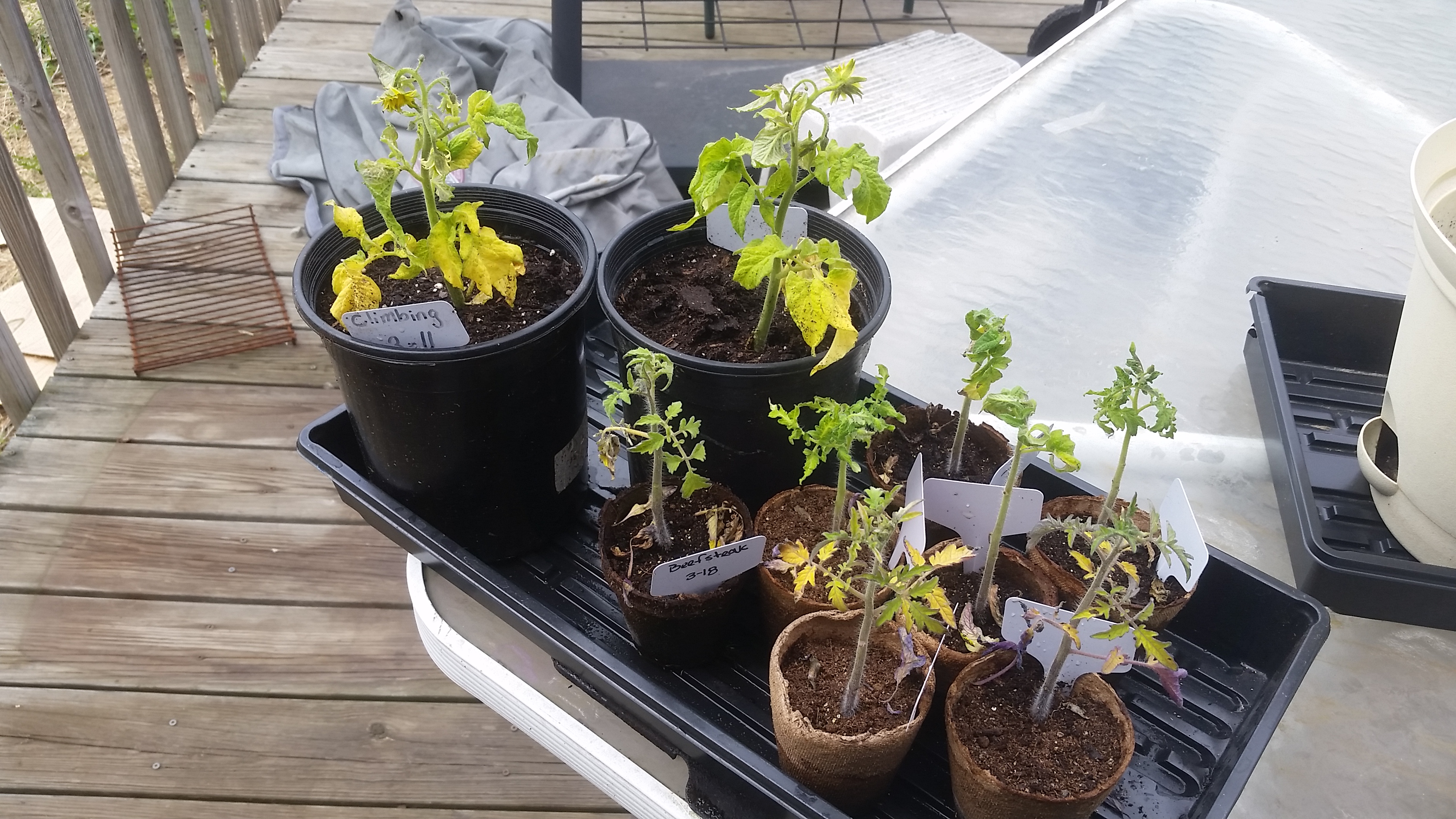 So I pulled a few from the greenhouse yesterday: 2 Mr. Stripey, 2 Black Prince, 2 heirloom, 2 climbing vine and 2 beefsteak.