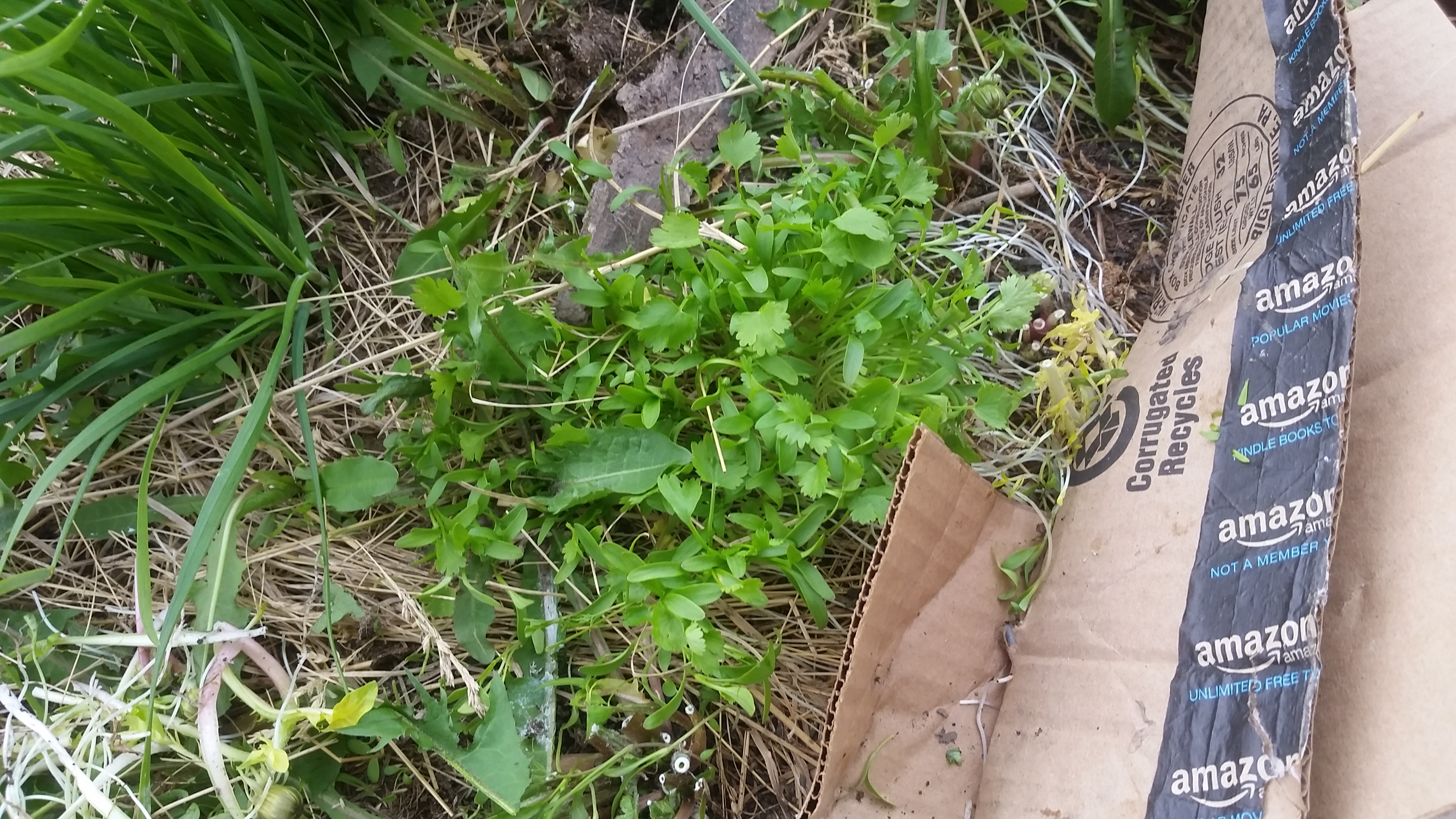 Cilantro is growing in the kitchen garden! Some of it went to seed last year and has now volunteered all over.