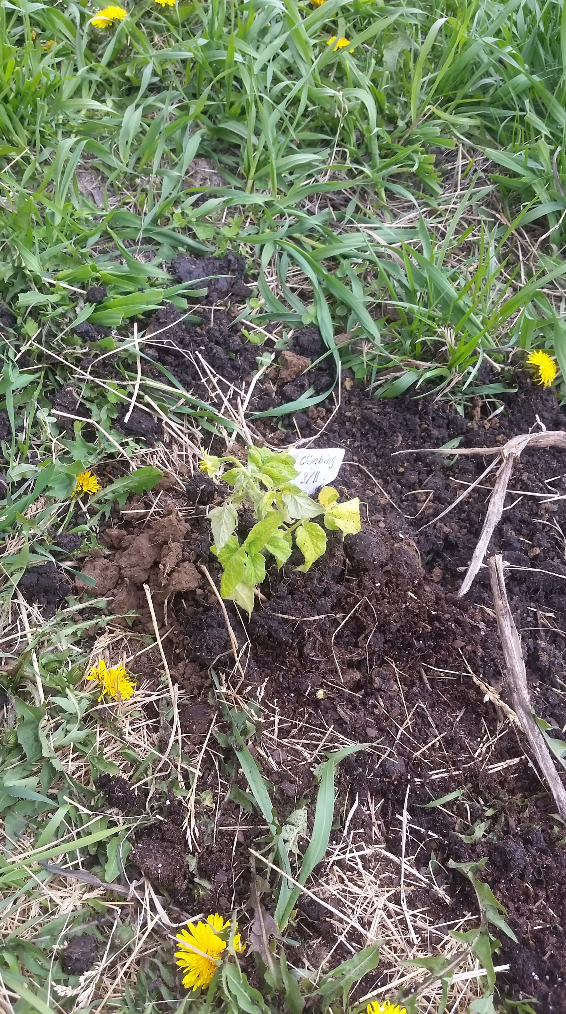 I told Joe to just tear it up a little bit at the bottom but he insisted on pulling the entire plant out, breaking up the roots a bit and then planting it in the hole.