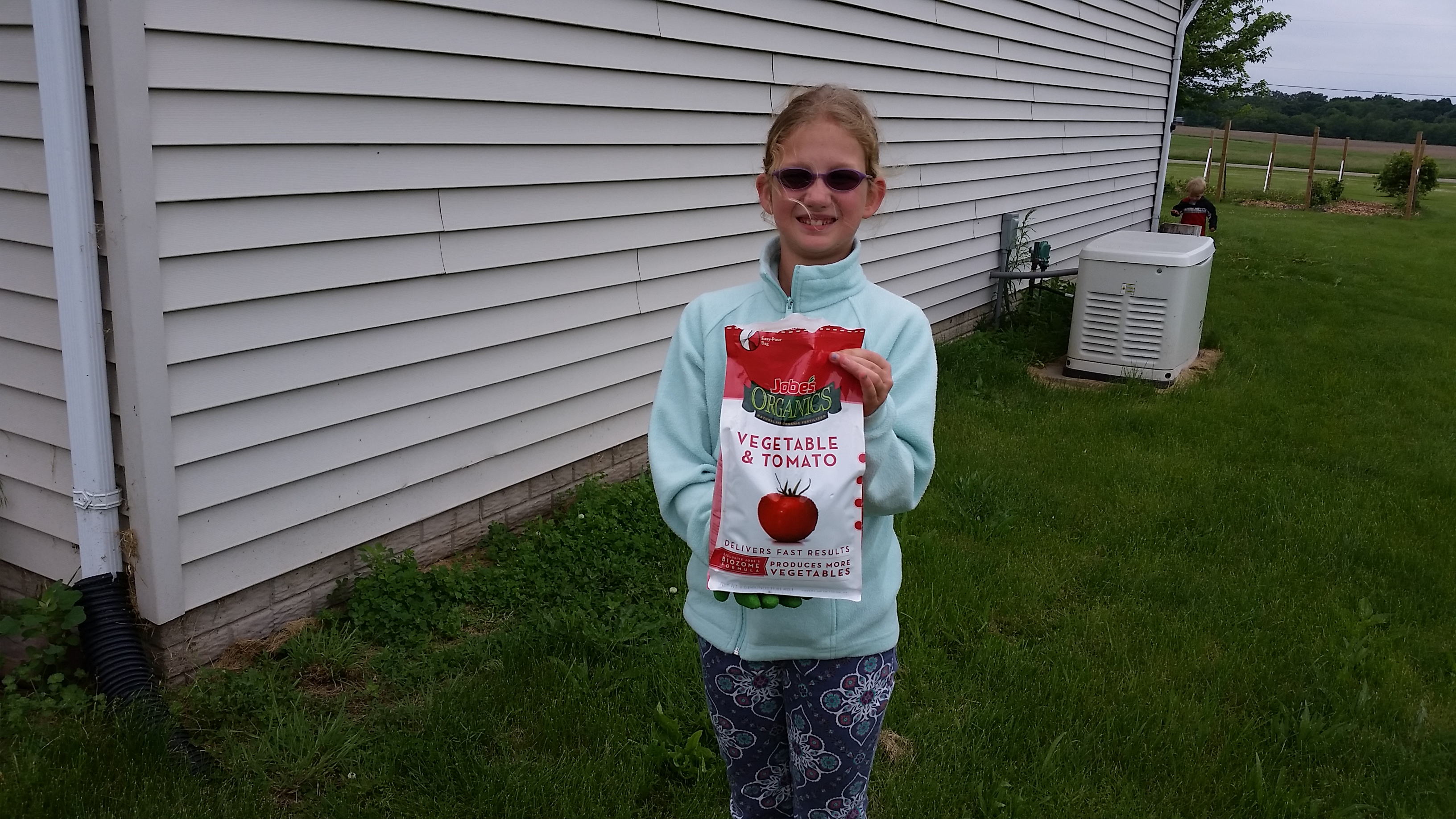 I’ve used powdered eggshell, some used coffee grounds and epsom salt as soil amendments. Now, for a little extra oomph, my assistant and I are throwing down organic tomato and vegetable fertilizer.