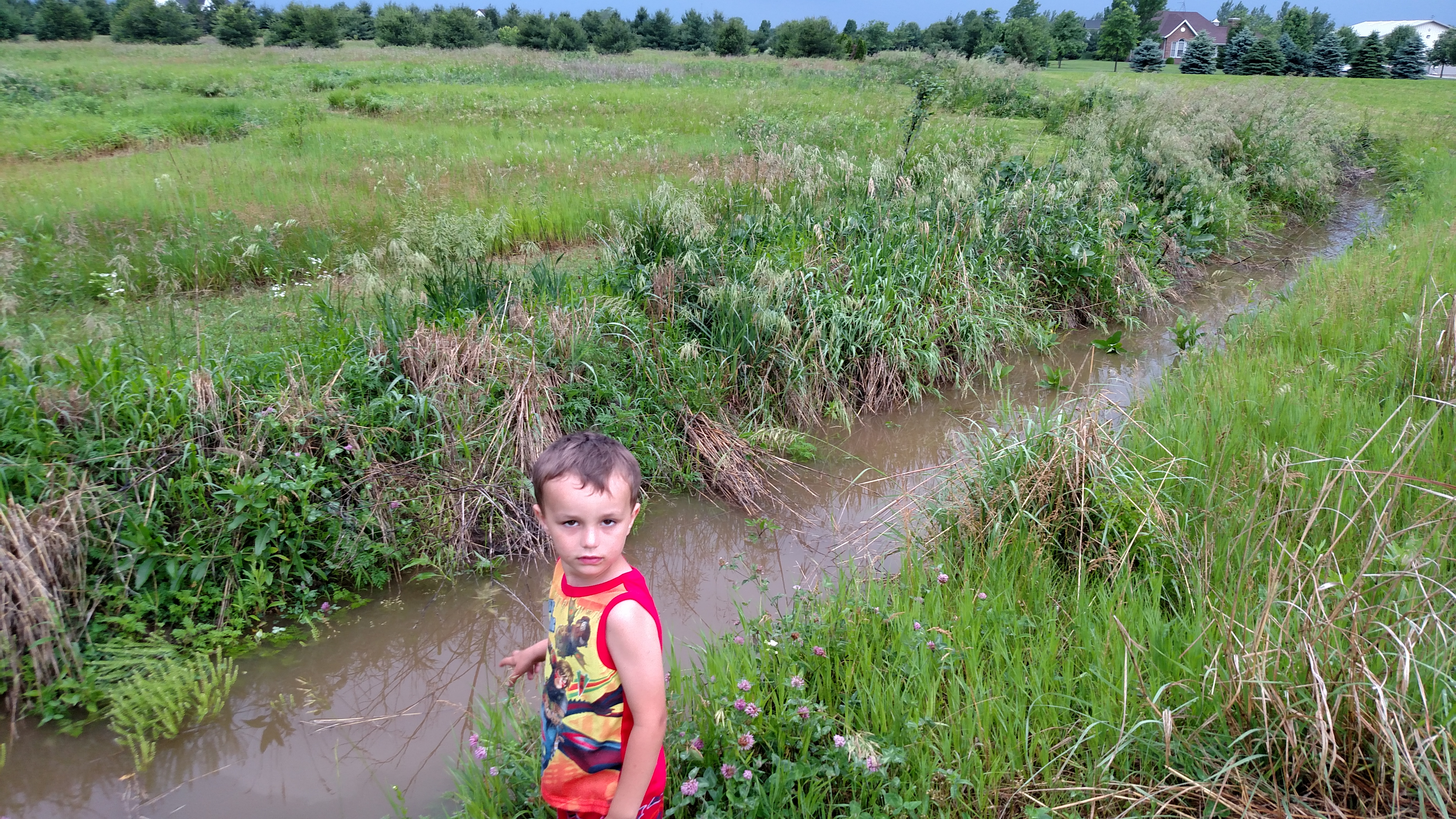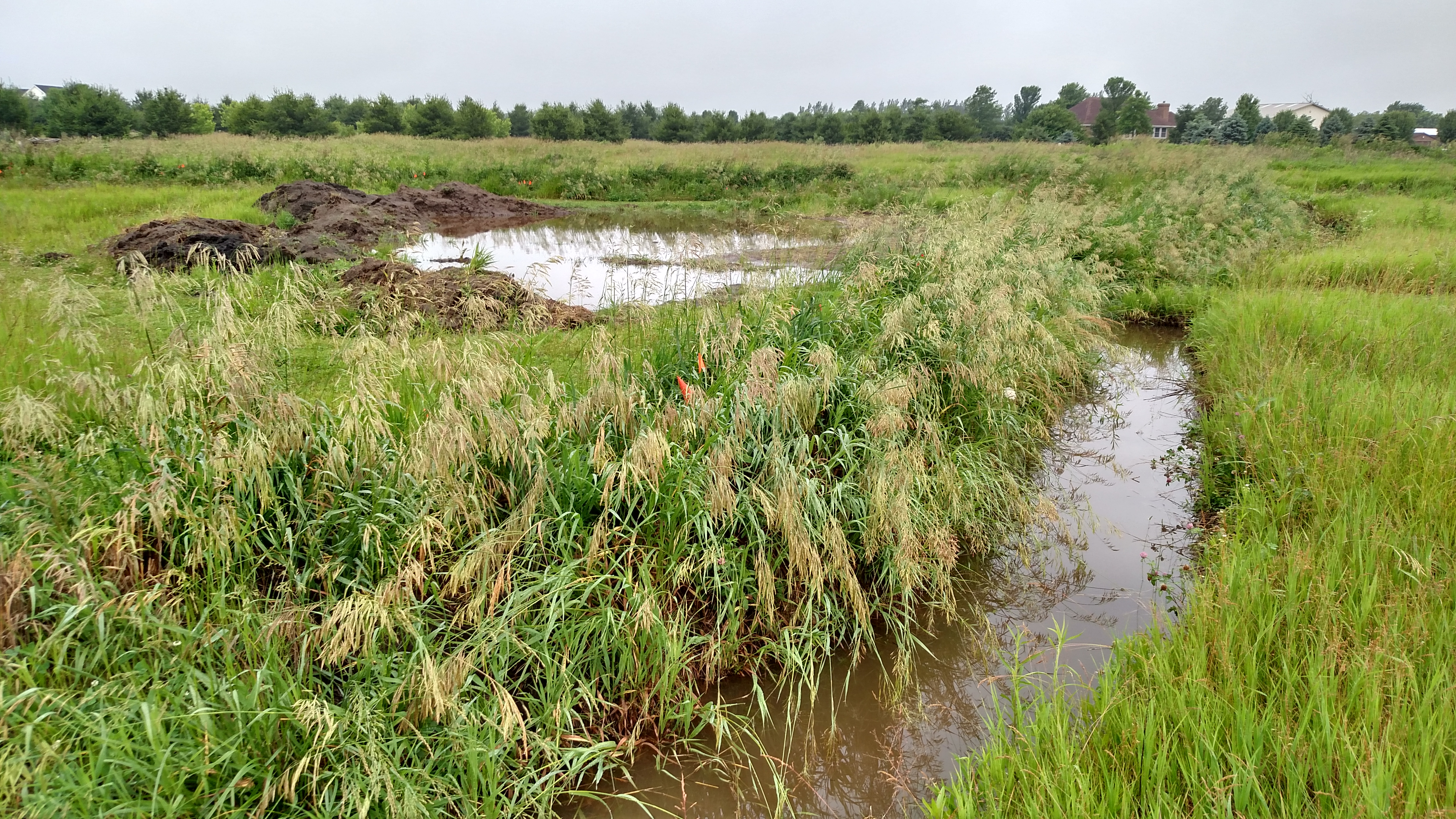 The swales were brim full of rainwater.